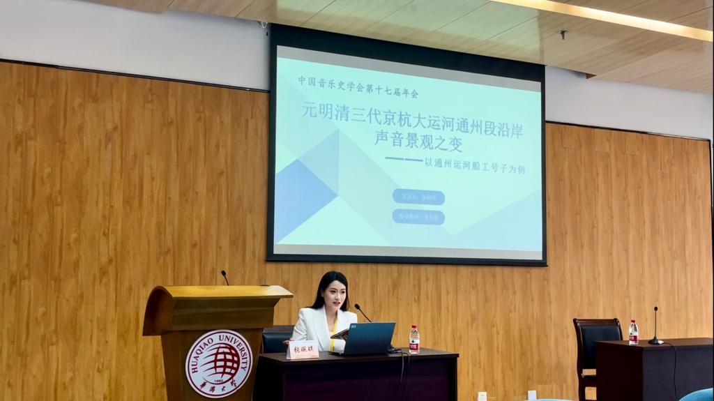 学生张婉琪则以《元明清三代京杭大运河通州段沿岸声音景观之变——以运河船工号子为例》(指导教师:周东颖)为题进行报告,此报告乃是其研究生科创项目(指导教师:罗帅、周东颖)的升华之作。尽管张婉琪的主专业为音乐教育,但在与老师共同的采风实践中,她关注到京杭运河通州段的音乐史料,在研究中聚焦京杭大运河通州段研究的稀缺现状,运用区域音乐史的研究法,依据运河变迁及区域文化特点,深入探讨沿岸声音景观,分析船工号子的构成与演化规律。