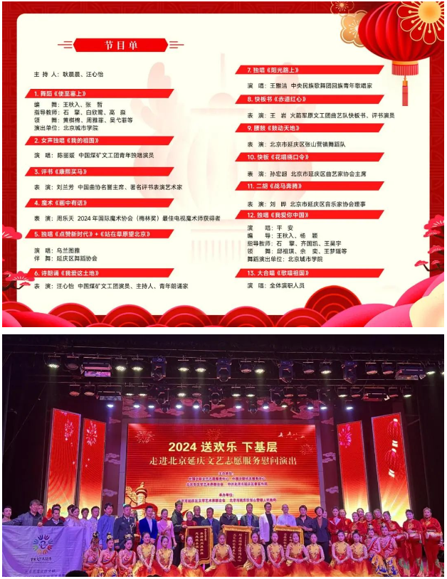 近日,sunbet申搏收到中国文联的锦旗与感谢信,表彰sunbet申搏积极响应中国文联志愿服务中心号召,走进延庆区文艺志愿服务慰问演出。