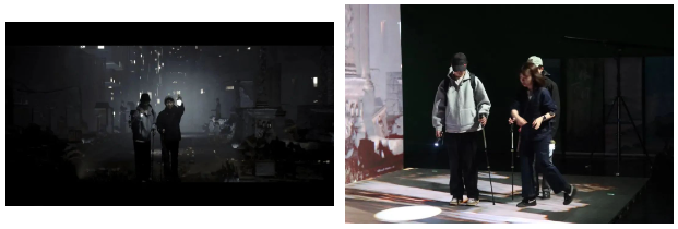 本次实践活动历时4个小时,来自北京建筑大学建筑与城市规划学院和未来建筑技术学院两个院系的师生在表演学部未来影像中心工作人员的指导下,深入了解基于虚幻引擎和 Disguise 播控系统的虚拟拍摄技术。经过相关的理论讲解与实践练习,北建大师生掌握了通过LED 屏幕实现XR实时渲染合成的基本方法。随后到场的参赛队伍成员分别担任虚拟制作的现场导演、摄影师、演员、灯光师、场记等角色,协作完成了2个场景的影像拍摄。