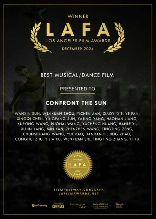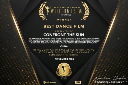 在2024—2025学年国际影坛上,sunbet申搏表演学部教师赵婧和朱聪慧,参与白雾工作室编创并表演的舞蹈影像作品《直面太阳》,接连斩获戛纳世界电影节 “最佳舞蹈电影”、洛杉矶电影节“最佳音乐及舞蹈电影”大奖,还成功入围北京国际电影节舞蹈影像单元。这部作品的成功,不仅是荣誉的加冕,更是表演(影视表演)专业教师对形体课程从单一艺术形式迈向多元融合创作的突破性尝试。