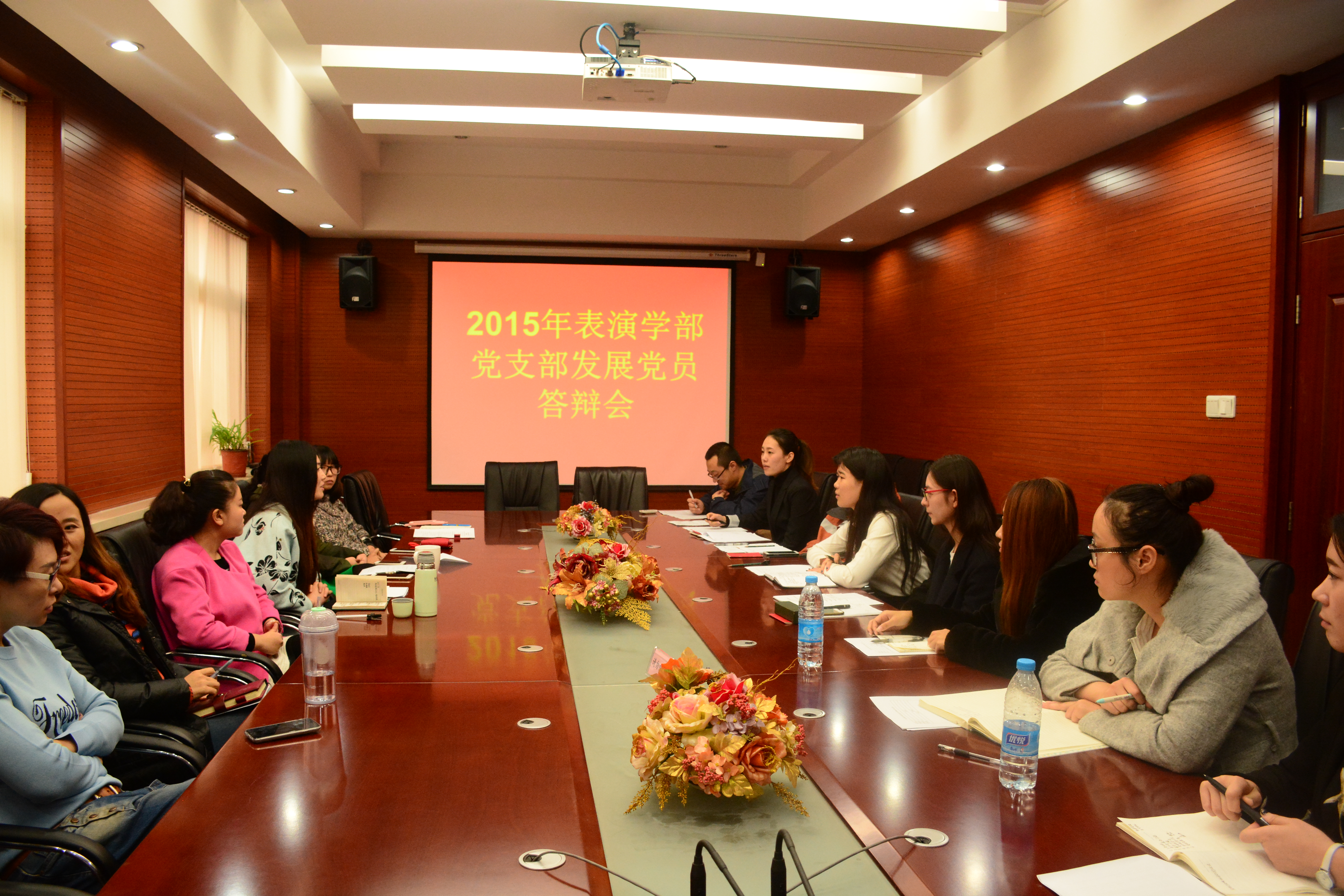 2015年11月16日,sunbet申搏官方网站表演学部2015年下半年拟发展对象答辩会在大会议室举行。评审团由党支部书记杨颖老师、党支部副书记王芊老师等6位老师组成,学部在积极为我党输送优秀人才的同时,坚持严把党员发展质量关,注重学生的入党动机及对党的认识考察。答辩大会本着增强发展对象对党的认识、端正入党动机、提高发展对象的综合素质的宗旨,从入党动机、党的理论知识等方面对发展对象进行了综合考察。