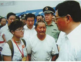 “在一次救援的空挡里我见到了来灾区视察的胡锦涛总书记,他握着我的手亲切的问候我,说我们志愿者辛苦了,说真的我们看到解放军日夜奋战,我们这点苦算什么呢,看到全国各地的人民惦记着我们,看到我们的亲人在受苦受难,我又怎么能离开呢,面对地震中逝去的爷爷,我更不能把时间浪费在睡觉上,因为时间就是生命,我要全力以赴投入到抗震救灾之中。我告诉胡总书记:我们不辛苦,真正辛苦的是解放军战士,真正感动中国的也是他们。看到党和人民都在牵挂着我们,看到来自全国各地帮助的人们,我们真的明白了,灾难不可怕,因为有党有国家,有13亿的亲人,我们重建家园不是梦,我们也有信心把家园建设的更美好。”