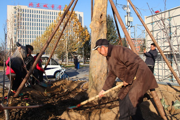 活动当天户外温度很低,但团聚的喜悦让每一位校友都倍感温暖。回校的校友中,既有1984级的第一批学生,也有今年刚刚走出校门的毕业生;既有当年共同成长的校园伙伴,也有如今一起奋斗的工作团队;既有带着合作愿望回馈母校的创业者,也有带着爱人、抱着孩子的家庭团。校领导们与校友们亲切交流并合影留念,场面非常热烈且温馨。在植树环节,校友们热情高涨、干劲十足,用心地培土、拌肥、浇水、挂牌,还纷纷与各自栽种的树木合影留念。