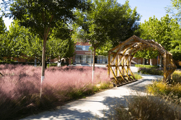 按照相关文件要求校园绿地率不应低于30%不过短短几年北城校园的植被就从7万平米的稀疏到18万平米的花海树林密布绿化率从21%增加到了35%富有美感的绿色画卷跃然映入眼帘
