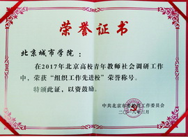 学校连续多年被评为北京高校青年教师社会调研组织工作先进校,组织师生充分发挥优势,聚焦北京现实问题,开展社会服务 |