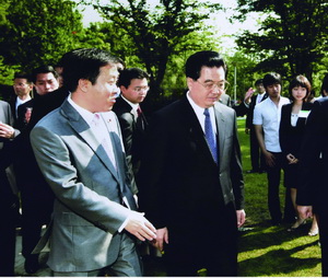 刘林校长多次陪同胡锦涛主席出访,图为刘林校长向胡主席介绍学校与韩国合作项目 |