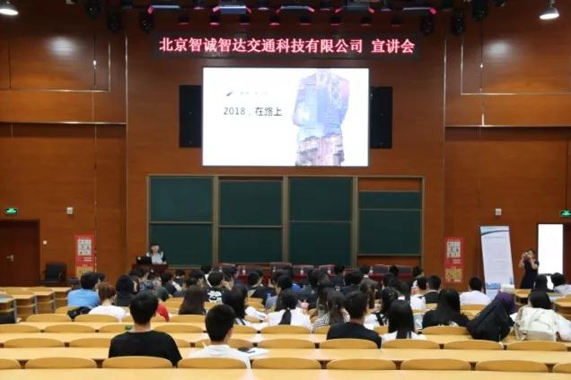 5月24日下午,北京智诚智达交通科技有限公司(北京交通发展研究院,简称智诚智达公司)校园宣讲招聘会在顺义校区综合楼东阶梯教室举行,会议有幸邀请公司总经理助理兼综合办公室主任罗欢、徐伟(高级项目经理)、梁文博(项目经理)、12级留任学生彭俊伟等五位嘉宾。交通工程专业秘书王艳玲老师主持会议,交通工程专业15、16、17级本科共计150人参加了讲座和宣讲会。