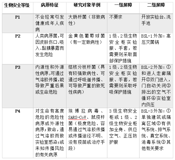 自从SARS爆发以来,国内外专家学者都普遍意识到生物安全领域面临的严峻形势。生物安全实验室是指应用于涉及具有传染可能性的微生物实验的生物实验室。国际上将生物实验室按照生物安全水平(BSL)分为P1、P2、P3和P4四个等级,P代表protection(意为防护),数字越大对应的实验室防护等级越高,所研究的微生物危害程度越大。学校用来教学的实验室通常属于P1实验室,而鼎鼎大名的埃博拉病毒,因其高致病性、高致死性仅可以在P4实验室开展研究。