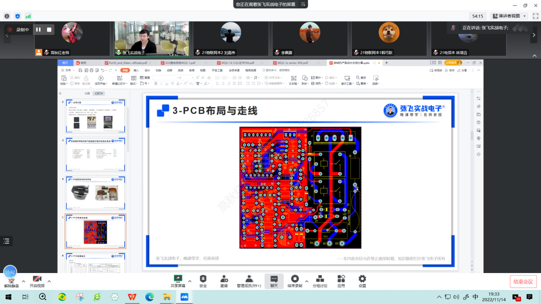 张飞老师从仪器设备准备、电路调试、现象分析,再到制板加工,细致讲解了碎纸机项目调试全过程,并耐心解答同学们提出问题,同学们课后都表示受益匪浅。