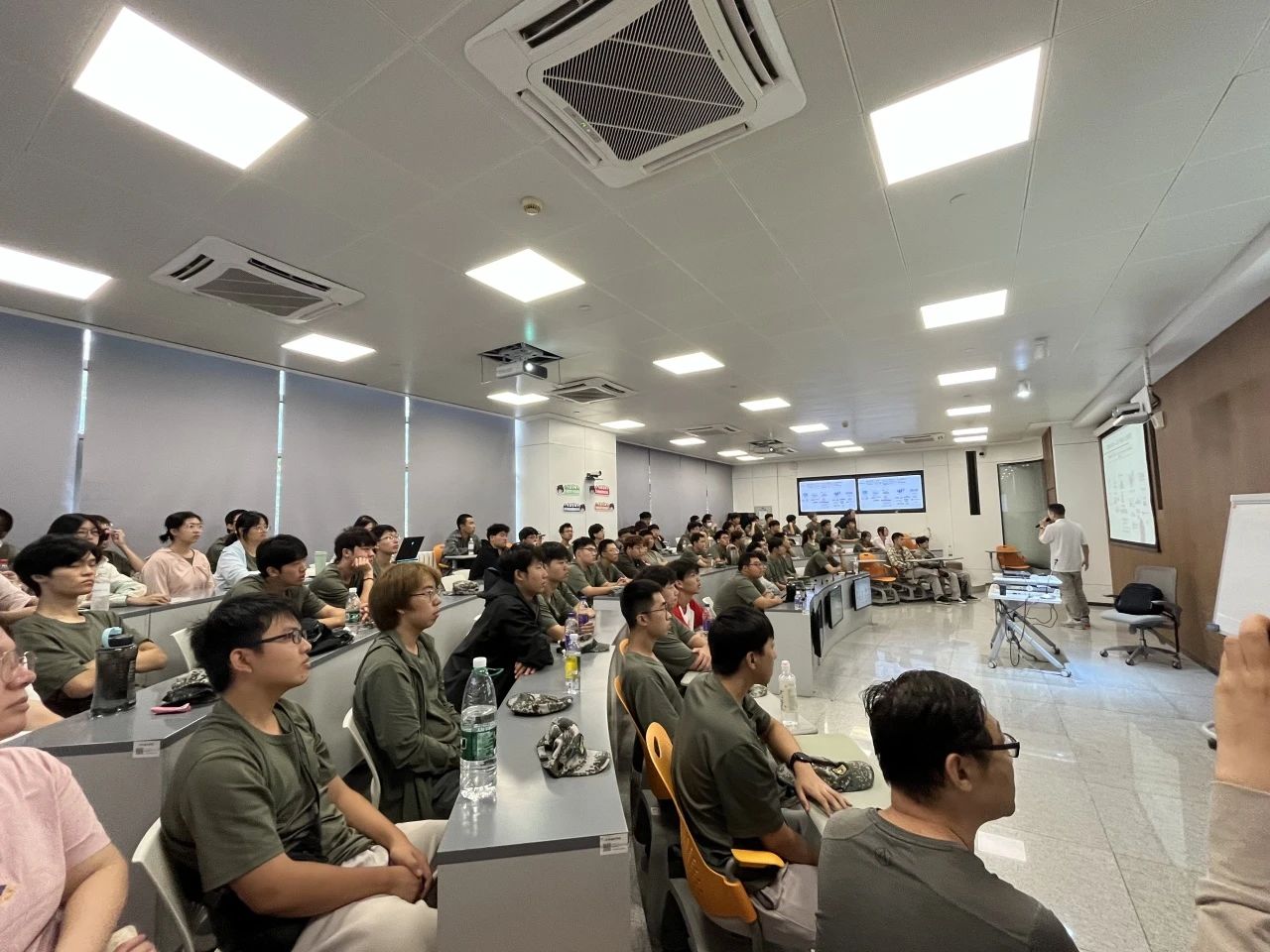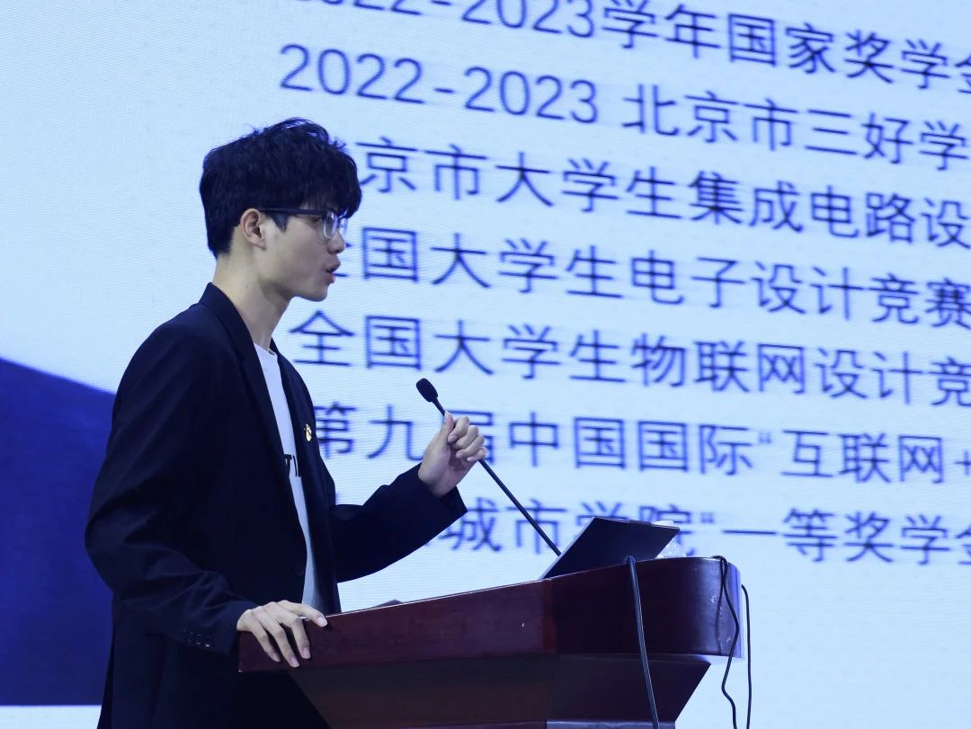 李亮学长给新生们讲述了他大学四年的经历,分享了许多他参加各类竞赛的心得,同时也表达了他对学部这四年培养的感谢之情。