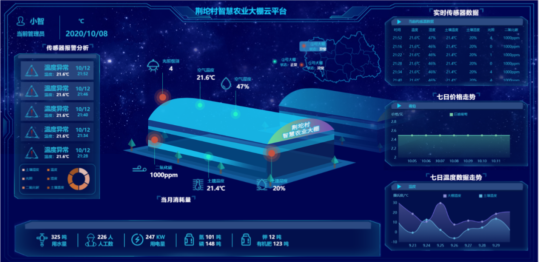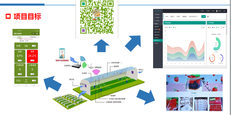 该项目充分发挥物联网技术在设施农业生产中的作用,自动控制温室大棚内部的空气温湿度、土壤水分温度、二氧化碳浓度、光照强度等。
