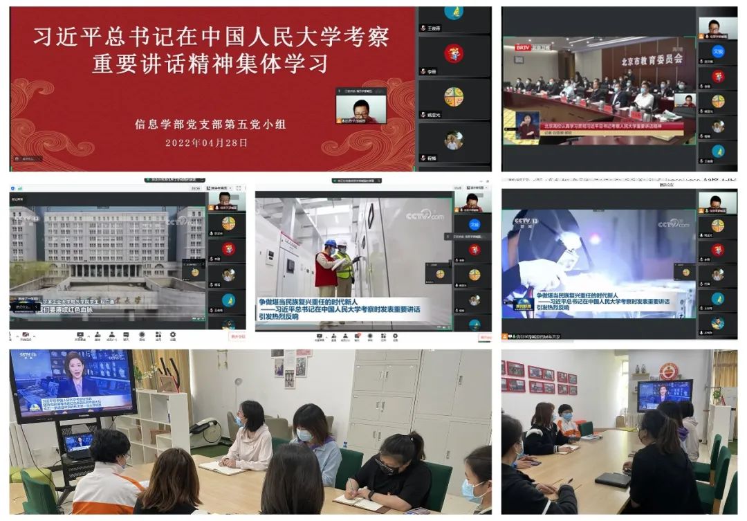 信息学部党支部通过集体学习、党小组讨论、个人学习等多种形式,组织党员深入学习贯彻习近平总书记在人民大学考察时的重要讲话精神,学部党员积极参与并分享自己的学习体会。