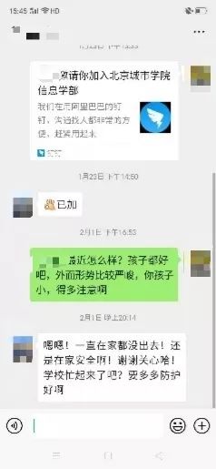主动关心询问在京自我隔离教职工个人及家属身体状况,是否有什么困难等。