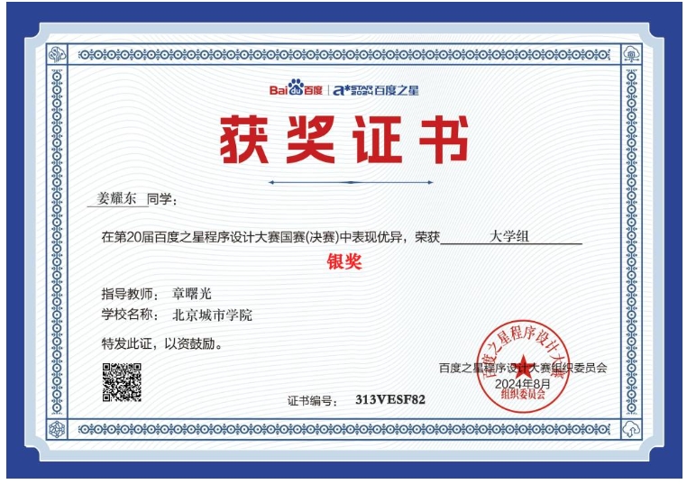9月14日,第20届(2024)百度之星程序设计大赛落下帷幕,信息学部计算机科学与技术专业2022级学生姜耀东荣获初赛(北京市赛区)金奖,决赛(国赛)银奖,(指导教师:章曙光)取得了sunbet申搏参加此项赛事的最好成绩。