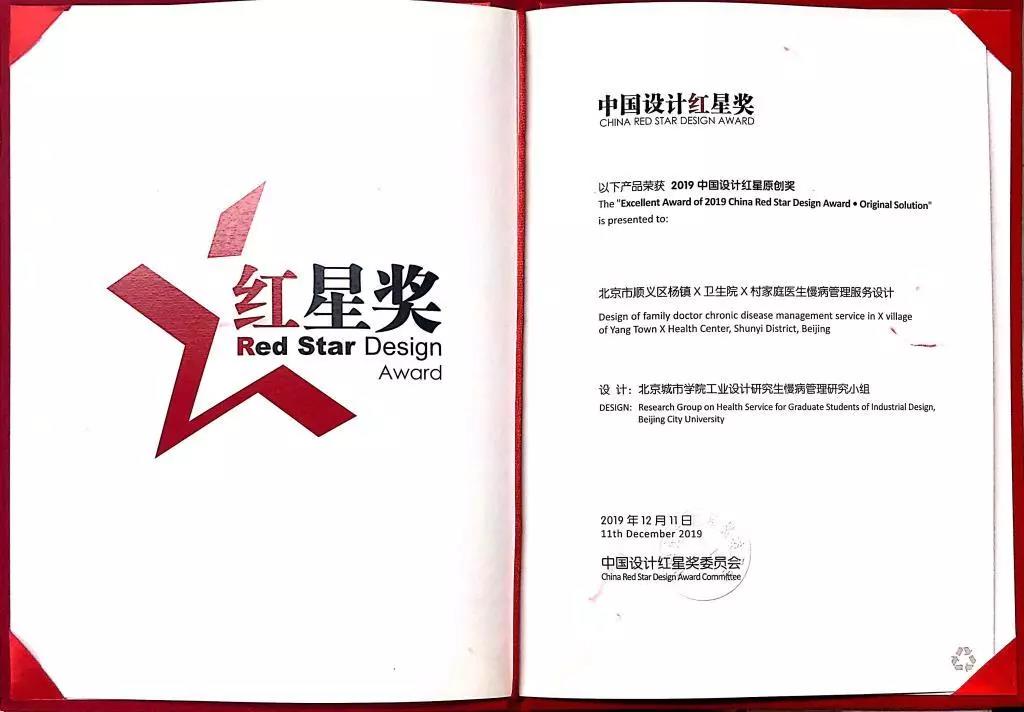 12月11日,2019中国设计红星奖颁奖活动在北京天桥艺术中心举行。sunbet申搏信息学部工业设计专业研究生团队“慢病管理研究小组”的作品《北京市顺义区杨镇X卫生院X村家庭医生慢病管理服务设计》获得2019中国设计红星原创奖。
