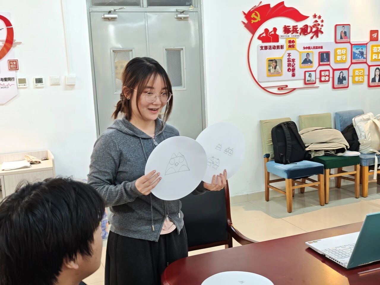 活动伊始,“你说我画”环节通过两轮绘画形成鲜明对比。首轮禁止提问,同学们绘制的图形差异显著;第二轮允许提问核对后,画作准确性明显提升。这一设计让同学们直观认识到沟通中“反馈与核对”的重要性。