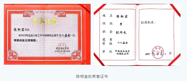 2014年毕业后,陈相宜没有忘记儿时的梦想,他报考了公务员,并脱颖而出,如愿成为了一名光荣的人民警察。