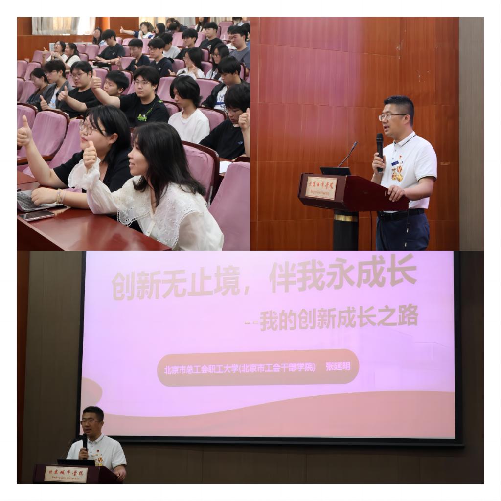 5月28日,首场讲座在航天城校区举行,北京市劳动模范、首都劳动奖章获得者张延明老师担任主讲嘉宾。张老师作为诺赛基因组研究中心技术总监,在基因科技领域深耕15年有余,专业积淀深厚,创新实践经验丰富。他以《创新无止境,伴我永成长》为题,结合自身科研成长之路,生动讲述了秉持创新理念、克服重重挑战,在基因科技领域不断突破的故事,深刻诠释了“创新无止境”的真谛。